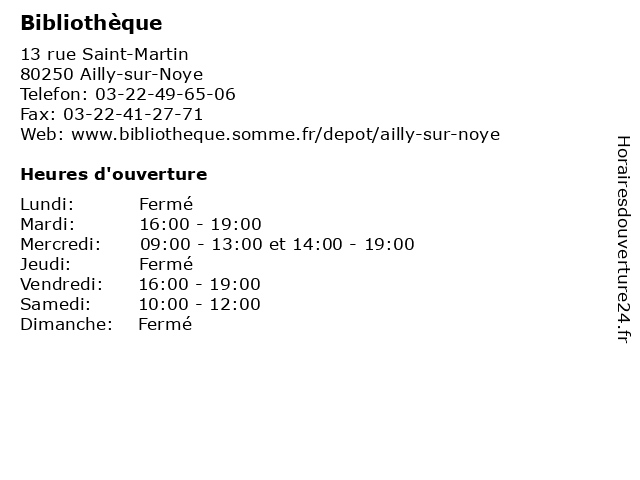 1 Bibliothèque (Distance: 4,52 km) . Rue de la Faloise, 80250 Chaussoy-Epagny bibliothèque, cd audio, cd.rom, livres, revues 2 Bibliothèque (Distance: 6,61 km) . Rue Mamou, 160 Oresmaux bibliothèque, cd audio, cd.rom, livres, revues 3 Bibliothèque (Distance: 6,70 km) 11 rue de l'Eglise, 80250 La Faloise bibliothèque, cd audio, cd.rom, livres, revues 4 Bibliothèque (Distance: 8,43 km) . Rue d'en haut, 80160 Flers sur Noye bibliothèque, cd audio, cd.rom, livres, revues 5 Bibliothèque (Distance: 8,96 km) 2 rue Gambetta, 80110 Moreuil bibliothèque, cd audio, cd.rom, livres, revues 6 Bibliothèque (Distance: 9,01 km) 2 Saint Vincent, 80250 Folleville bibliothèque, cd audio, cd.rom, livres, revues |