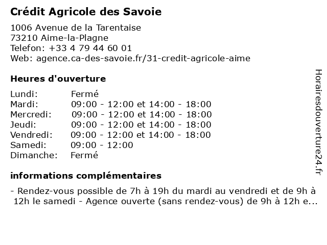 1 Crédit Agricole des Savoie (Distance: 5,88 km) Lieu-dit La Plagne, 73210 La Plagne-Tarentaise agricole, crédit, des, savoie 2 Crédit Agricole des Savoie (Distance: 10,27 km) Terrasse Miraldi, 73700 Bourg-Saint-Maurice agricole, crédit, des, savoie 3 Crédit Agricole des Savoie (Distance: 11,48 km) 141 Avenue du Centenaire, 73700 Bourg-Saint-Maurice agricole, crédit, des, savoie 4 Crédit Agricole des Savoie (Distance: 12,11 km) 99 Square de la Liberté, 73600 Moutiers agricole, crédit, des, savoie 5 Crédit Agricole des Savoie (Distance: 12,55 km) 55 Rue Jean Jaurès, 73350 Bozel agricole, crédit, des, savoie 6 Crédit Agricole des Savoie (Distance: 13,24 km) 6 Rue Emile Machet, 73570 Brides-les-Bains agricole, crédit, des, savoie |