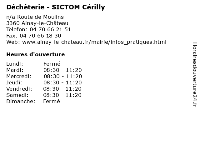 Termes de recherche pour Déchèterie - SICTOM Cérilly:chateau, ainay, cerilly, dechetterie, déchèterie, sictom, 03360 |