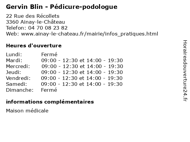 Termes de recherche pour Gervin Blin - Pédicure-podologue:chateau, pied, ainay, blin, podologue, pédicure, gervin, 03360 |
