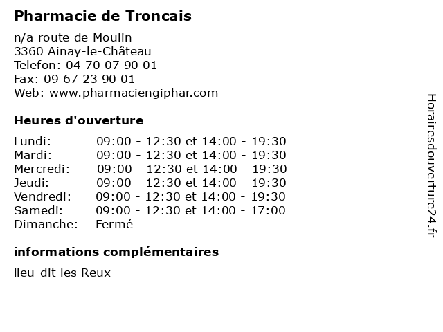 Termes de recherche pour Pharmacie de Troncais:de, pharmacie, médicaments, parapharmacie, orthopedie, tronçais, homéopathie, tronchais |