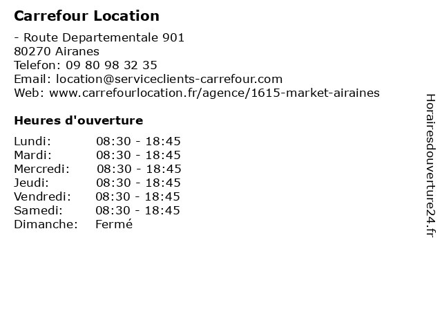 1 Carrefour Location (Distance: 17,69 km) - Rue Nouvelle, 80290 Poix De Picardie agence, carrefour, location, utilitaires, véhicules 2 Carrefour Market Drive (Distance: 0,01 km) - route départementale 901, 80270 Airaines carrefour, drive, hard discount, hypermarchés, les dépanneurs, market, supermarchés 3 Carrefour Market (Distance: 3,61 km) - Route Départementale 901, 80270 Airaines alimentation, carrefour, magasin discount, market, supermarché 4 Carrefour Drive (Distance: 14,67 km) - Route Chaussee Tirancourt, 80310 Picquigny alimentaire, carrefour, courses, drive, en ligne, magasin 5 Carrefour Contact (Distance: 14,75 km) - Route Chaussée Tirancourt, 80310 Picquigny alimentaire, alimentation, carrefour, contact, courses, distributeur, hypermarché, supermarché, épicerie 6 Carrefour Contact (Distance: 15,75 km) 26 Avenue de la Libération, 80430 Beaucamps Le Vieux alimentaire, alimentation, carrefour, contact, courses, distributeur, hypermarché, supermarché, épicerie |