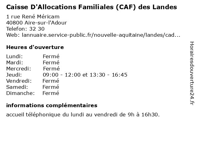 Termes de recherche pour Caisse D'Allocations Familiales (CAF) des Landes:des, landes, caisse, d'allocations, familiales, social, caf, aide, rsa, apl, rmi |