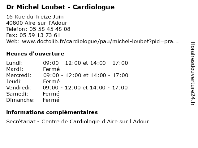 1 Dr Jean-Yves Beigbeder - Cardiologue (Distance: 0,00 km) 16 Rue du Treize Juin, 40800 Aire-sur-l'Adour beigbeder, cardiologue, consultation, docteur, dr, jean, med, médecin, médecine, traitement, yves 2 Dr Philippe Couderc - Cardiologue (Distance: 0,00 km) 16 Rue du Treize Juin, 40800 Aire-sur-l'Adour cardiologue, consultation, couderc, docteur, dr, med, médecin, médecine, philippe, traitement 3 Dr Hermeland Delagarde - Cardiologue (Distance: 0,00 km) 16 Rue du Treize Juin, 40800 Aire-sur-l'Adour cardiologue, consultation, delagarde, docteur, dr, hermeland, med, médecin, médecine, traitement 4 Dr Olivier Faucher - Cardiologue (Distance: 0,00 km) 16 Rue du Treize Juin, 40800 Aire-sur-l'Adour cardiologue, consultation, docteur, dr, faucher, med, médecin, médecine, olivier, traitement 5 Dr Sarah Hassam - Cardiologue (Distance: 0,00 km) 16 Rue du Treize Juin, 40800 Aire-sur-l'Adour cardiologue, consultation, docteur, dr, hassam, med, médecin, médecine, sarah, traitement 6 Dr Aurélien Hébrard - Cardiologue (Distance: 0,00 km) 16 Rue du Treize Juin, 40800 Aire-sur-l'Adour aurélien, cardiologue, consultation, docteur, dr, hébrard, med, médecin, médecine, traitement |
