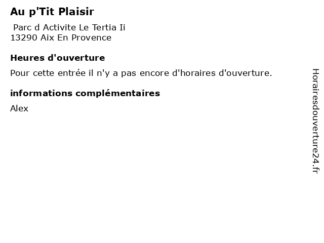 Termes de recherche pour Au p'Tit Plaisir:plaisir, restaurants, alex, tit |