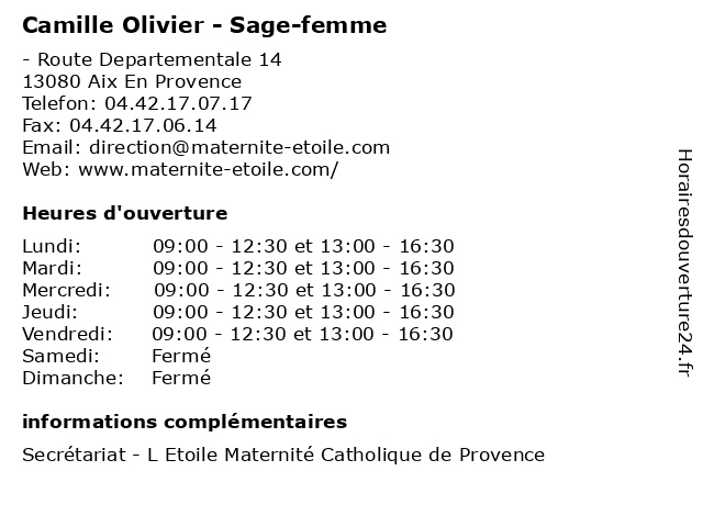 | Mardi | 09:00-12:30 et 13:00-16:30 |