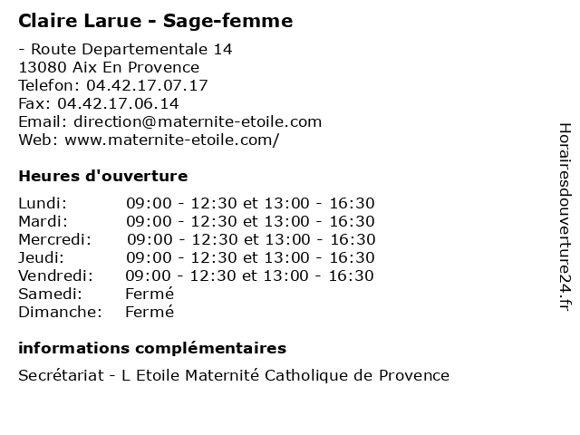 | Mardi | 09:00-12:30 et 13:00-16:30 |