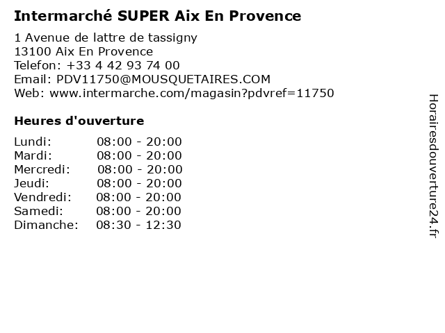 1 Intermarché EXPRESS Aix en Provence (Distance: 1,79 km) 27 Avenue jean et marcel fontenaille, 13100 Aix en Provence aix, en, express, intermarché, provence 2 Intermarché CONTACT Aix-En-Provence (Distance: 2,05 km) 724 Avenue du Club Hippique, 13090 Aix-En-Provence aix, contact, en, intermarché, provence 3 Intermarché SUPER Aix-En-Provence (Distance: 2,36 km) Avenue des Infirmeries, 13100 Aix-en-Provence aix, en, intermarché, provence, super 4 Intermarché SUPER Venelles (Distance: 6,41 km) 132 Allée du verdon, 13770 Venelles intermarché, super, venelles 5 Intermarché SUPER Gardanne (Distance: 8,57 km) Avenue d'Arménie, 13120 Gardanne gardanne, intermarché, super 6 |