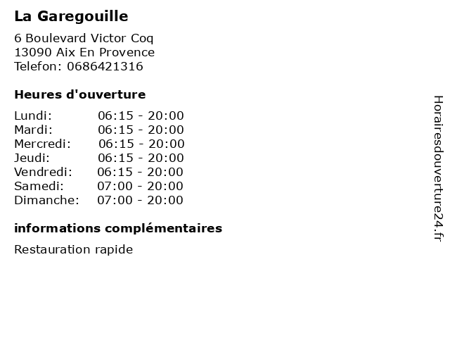 Lundi | 06:15-20:00 |
