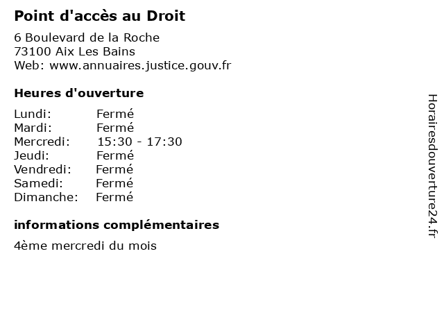 1 Maison de Justice et du Droit (Distance: 1,05 km) 1500 boulevard Lepic, 73100 Aix-les-Bains administration, assoc, de, droit, du, et, justice, maison, services, services publics 2 Maison De Justice Et Du Droit (Distance: 10,26 km) 28 place du Forum, 73000 CHAMBERY administration, assoc, de, droit, du, et, justice, maison, services, services publics 3 Accès Industrie (Distance: 11,46 km) - Rue Charles Montreuil, 73420 Mery acces, accès, entretien, industrie, location, manutention, matériel, nacelle, réparation, vente 4 Groupe MG - Avocat Droit des Affaires La Ravoire (Distance: 13,02 km) 69 Route de Barby, 73490 La Ravoire affaires, avocat, des, droit, groupe, la, mg, ravoire 5 CH Metropole Savoie - Permanence d'accès aux soins de santé (PASS) (Distance: 13,08 km) 37 Rue Saint François de Sales, 73000 Chambery aux, bureau, ch, consultation, d'accès, de, dr, maladie, med, metropole, médecin, médecine, pass, permanence, pratique, santé, savoie, soins, thérapie, traitement 6 SFR (Distance: 0,61 km) 7 Place Carnot, 73100 Aix Les Bains abonnements de téléphonie mobile ou fixe fixe ou carte prépayée, accès internet haut débit ou la fibre optique ainsi que des abonnements à des bouquets de chaînes de télévision ., sfr, téléphones mobiles |