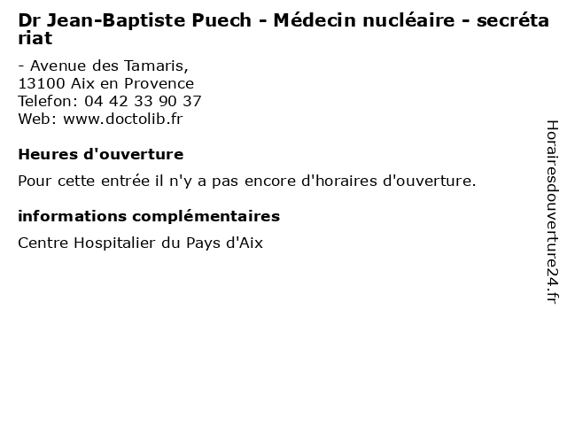 | Appeler Dr Jean-Baptiste Puech - Médecin nucléaire - secrétariat | |