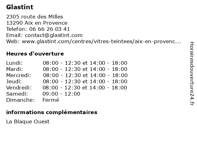 | Lundi | 08:00-12:30 et 14:00-18:00 |