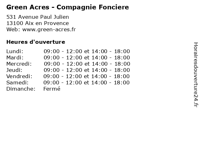 | Lundi | 09:00-12:00 et 14:00-18:00 |