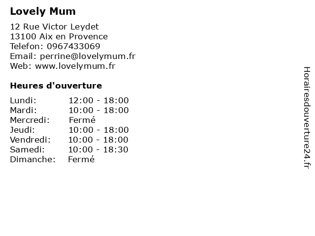1 Mum Sabai (Distance: 0,56 km) 35 Rue Boulegon, 13100 Aix-en-Provence beauté, massage, mum, relax, sabai, salon, thai 2 P'tit Marquis (Distance: 0,27 km) 66 Rue des Cordeliers, 13100 Aix En Provence baby, enfants, marquis, mode enfants, p'tit, vestimentaire, vêtements de grossesse 3 CAD - Chaussures (Distance: 0,28 km) 2 Rue Espariat, 13100 Aix en Provence cad, chaussure, chaussures, enfant, habits, mode 4 Canon Shoes (Distance: 0,52 km) 4 Rue d'Italie, 13100 Aix en Provence canon, chaussure, enfant, habits, mode, shoes 5 Recto Verso (Distance: 23,44 km) 274 Avenue des Poilus, 13012 Marseille chaussure, enfant, habits, mode, recto, verso 6 Hermine Diffusion (Distance: 24,95 km) 88 Rue Montaigne, 13012 Marseille chaussure, diffusion, enfant, habits, hermine, mode |