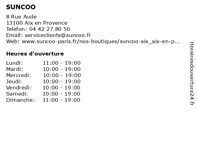1 Comptoir des Cotonniers (Distance: 0,00 km) 1 Rue Aude, 13100 Aix-en-Provence accessoires, chaussures, comptoir, cotonniers, des, mode femme 2 Cop.Copine (Distance: 0,00 km) 6bis Rue Aude, 13100 Aix-en-Provence accessoires, chaussures, cop, cop.copine, copine, femme, homme, mode, vetements 3 Karl Marc John (Distance: 0,02 km) 16 Rue Espariat, 13100 Aix-en-Provence boutique, femme, habillement, john, karl, marc, mode 5 SANDE (Distance: 0,04 km) 18 Rue Papassaudi, 13100 Aix-en-Provence accessoires, boutique, mode, sande, vêtements 6 |