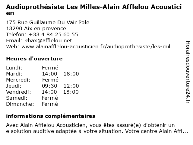 Termes de recherche pour Audioprothésiste Les Milles-Alain Afflelou Acousticien:les, alain, afflelou, acousticien, audioprothésiste, milles |