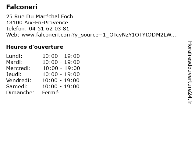 1 LUSH Cosmetics Aix-en-Provence (Distance: 0,03 km) 41 Rue Bédarrides, 13100 Aix-en-Provence aix, boutique de cadeaux, cosmetics, drugstores, en, lush, magasin d'articles de fête, magasin de produits de soins capillaires, parfumerie, provence 2 Intimissimi (Distance: 0,03 km) 15 Rue Marechal Foch, 13100 Aix En Provence intimissimi, magasin de lingerie, magasin de vêtements pour femmes, magasin de vêtements pour hommes 3 Morgan (Distance: 0,04 km) 15 rue Aude, 13100 Aix-en-Provence accessoires, ceintures, femmes, jeans, mode, morgan, pantalons, shorts 4 Morgan (Distance: 0,04 km) 15 Rue Aude, 13100 AIX EN PROVENCE blazer femme, cardignan femme, chaussures femme, gilet femme, jean femme, magasin femme, magasin vêtements, manteau femme, mode femme, morgan, pull femme, robe femme, sac femme, t-shirt femme, tailleur femme, top femme, vêtements femmes 5 Boot Shoes (Distance: 0,04 km) 8 rue Laurent Fauchier, 13100 Aix-en-Provence adultes, boot, chaussures, enfants, magasin, shoes 6 Les Sisterettes (Distance: 0,05 km) 35 rue Bédarrides, 13100 Aix en Provence accessoires, femme, les, magasin, mode, sisterettes, vetements |