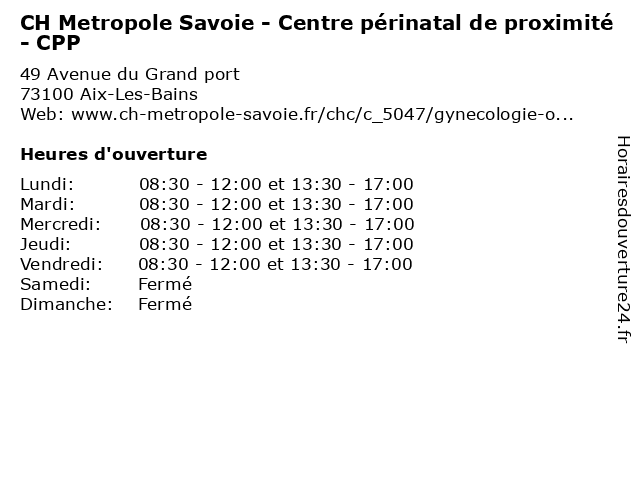 | Lundi | 08:30-12:00 et 13:30-17:00 |