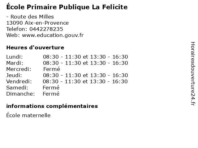 | Mardi | 08:30-11:30 et 13:30-16:30 |