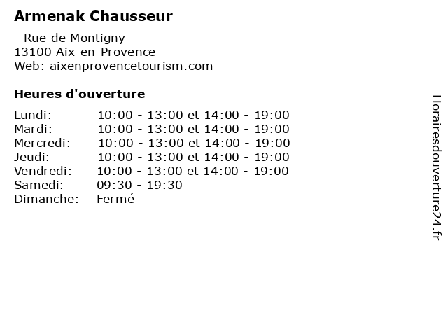 | Lundi | 10:00-13:00 et 14:00-19:00 |