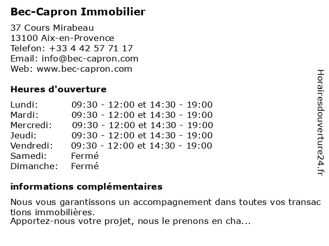 1 Green Acres - Agence Bec Capron (Distance: 4,50 km) 1575 Ch De La Fontaine Des Tuiles, 13100 Aix en Provence acres, agence, apartment rentals, bec, capron, green, home sales, real estate 2 Dr Jean-Louis Capron - Médecin du travail (Distance: 6,92 km) 450 Rue Albert Einstein, 13290 Aix-en-Provence capron, consultation, docteur, dr, du, jean, louis, med, médecin, traitement, travail 4 Cynthia Le Bec - Ostéopathe (Distance: 23,49 km) 4 Rue de la fonse, 13160 Gignac-La-Nerthe bec, cynthia, douleurs, le, musculaires, ostéopathe, santé 5 BEC Construction - Groupe Fayat (Distance: 26,47 km) 25 boulevard de Saint-Marcel, 13011 Marseille bec, chantier, construction, fayat, groupe, immobilier, travaux 6 Boucherie Bec Pere et Fils (Distance: 29,02 km) 6 Avenue de Mazargues, 13008 Marseille bec, boucherie, et, fils, pere |