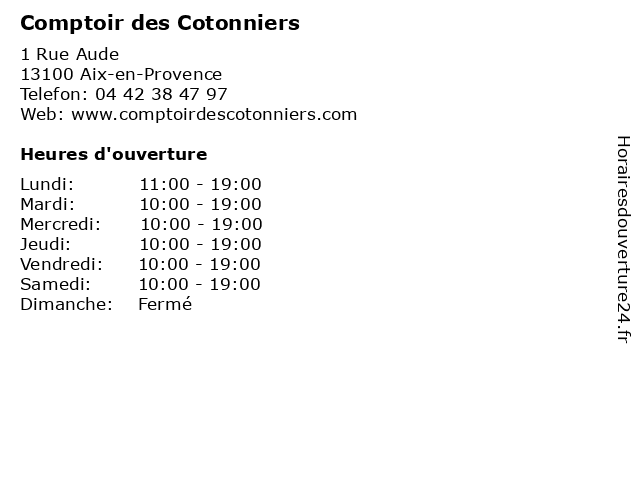 | Mercredi | 10:00-19:00 |