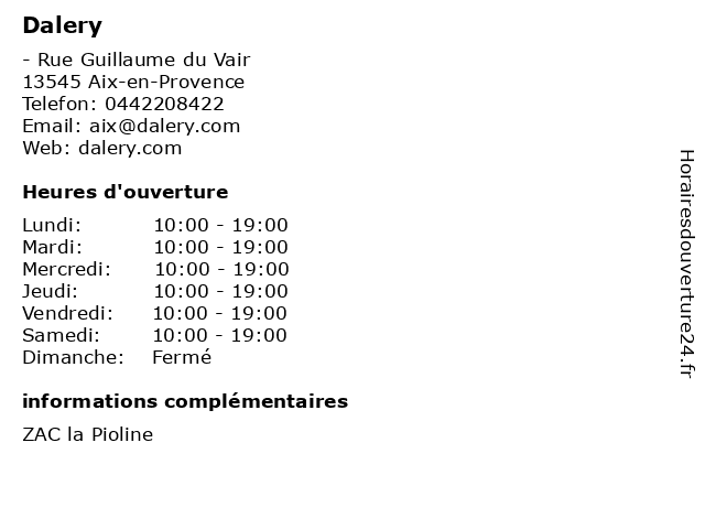 1 Dalery (Distance: 18,89 km) . Chemin de St Pierre, 13700 Marignane bagagerie, bijouterie, dalery, maroquinerie 2 Dalery - Concept Store (Distance: 4,31 km) 39 rue Bedarrides, 13100 Aix-en-Provence bagagerie, bijouterie, concept, dalery, maroquinerie, store 3 Bleu Cerise (Distance: 16,21 km) 15 Avenue de saint antoine, 13015 Marseille bagagerie, bleu, cerise, magasins, maroquinerie 4 Eram (Distance: 20,17 km) n/a Route nationale 113, 13127 Vitrolles accessoires, bagagerie, eram, femme, homme, maroquinerie, mode 5 Bleu Cerise (Distance: 20,17 km) n/a Route nationale 113, 13127 Vitrolles accessoires, bagagerie, bleu, cerise, maroquinerie 6 Longchamp (Distance: 23,87 km) 21 Rue Paradis, 13001 Marseille bagagerie, fabricant de prêt-à-porter, longchamp, magasin de chaussures, magasin de lunettes de soleil, magasin de vêtements pour femmes, magasin d’accessoires de mode, mode |