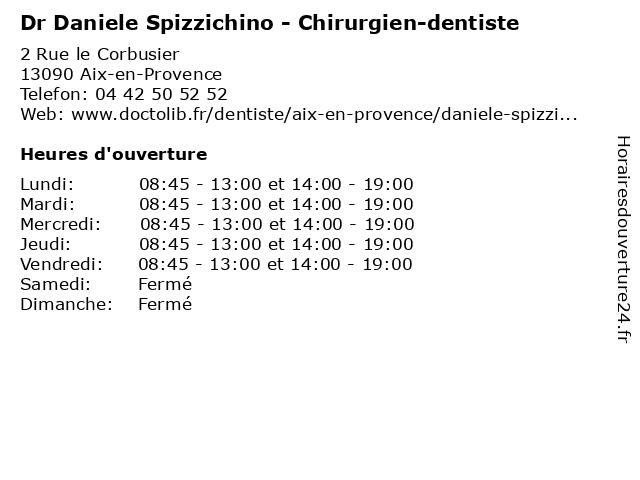 | Lundi | 08:45-13:00 et 14:00-19:00 |