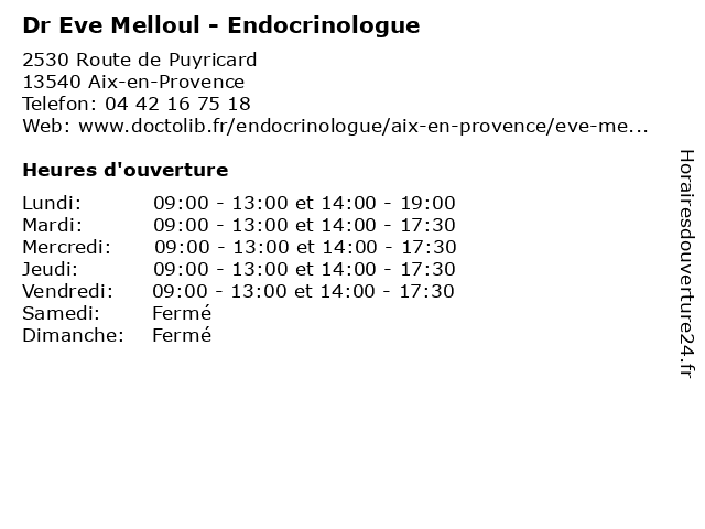 | Lundi | 09:00-13:00 et 14:00-19:00 |