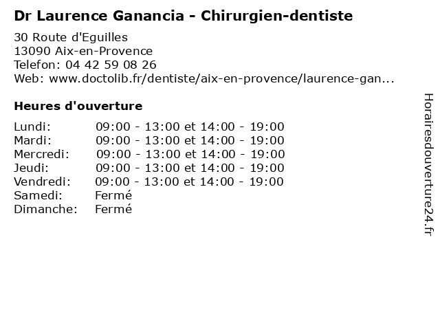 | Lundi | 09:00-13:00 et 14:00-19:00 |