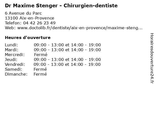 | Lundi | 09:00-13:00 et 14:00-19:00 |