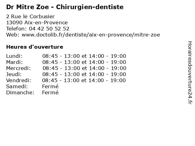 | Lundi | 08:45-13:00 et 14:00-19:00 |