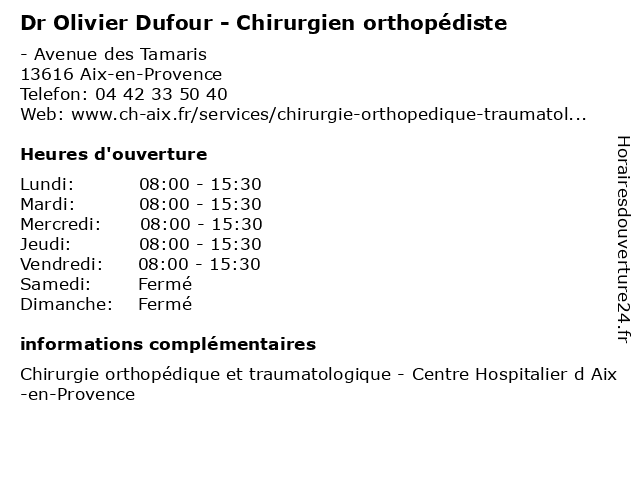 1 Dr Johannes Braden - Chirurgien orthopédiste (Distance: 0,00 km) - Avenue des Tamaris, 13616 Aix-en-Provence braden, chirurgien, consultation, docteur, dr, johannes, med, médecin, médecine, orthopédiste, traitement 2 Dr Jean-Philippe Lemaire - Chirurgien orthopédiste (Distance: 0,00 km) - Avenue des Tamaris, 13616 Aix-en-Provence chirurgien, consultation, docteur, dr, jean, lemaire, med, médecin, médecine, orthopédiste, philippe, traitement 3 Dr Jeremy Viola - Chirurgien orthopédiste (Distance: 0,47 km) 42 Avenue Maréchal de Lattre de Tassigny, 13100 Aix-en-Provence chirurgien, consultation, docteur, dr, jeremy, med, médecin, médecine, orthopédiste, secrétariat, traitement, viola 4 Romain Dufour - Masseur-kinésithérapeute (Distance: 1,01 km) 23 Avenue Sainte-Victoire, 13100 Aix-en-Provence bien-être, dufour, en, forme, kinésithérapeute, kinésithérapie, masseur, remise, romain, rééducation 5 Dr Guillaume Blanc - Chirurgien orthopédiste - secrétariat (Distance: 1,42 km) 2 Avenue du Docteur Aurientis, 13100 Aix-en-Provence blanc, chirurgien, consultation, docteur, dr, guillaume, med, médecin, médecine, orthopédiste, secrétariat, traitement 6 Dr Damien Delgrande - Chirurgien orthopédiste - secrétariat (Distance: 1,42 km) 2 Avenue du Docteur Aurientis, 13100 Aix-en-Provence chirurgien, consultation, damien, delgrande, docteur, dr, med, médecin, médecine, orthopédiste, secrétariat, traitement |
