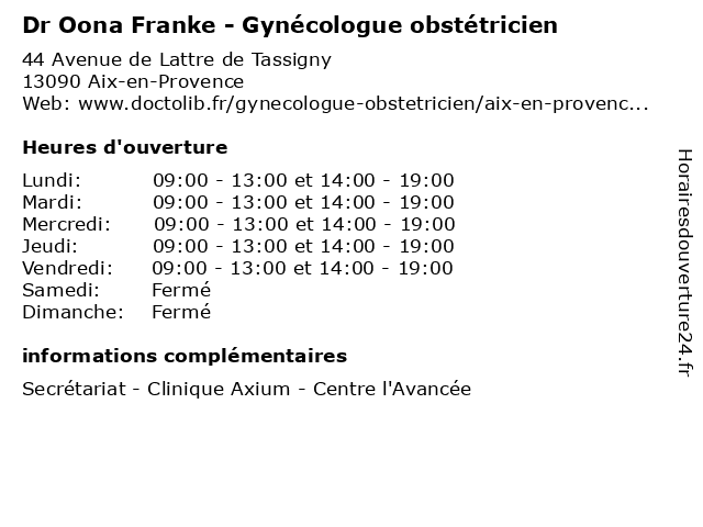 | Lundi | 09:00-13:00 et 14:00-19:00 |