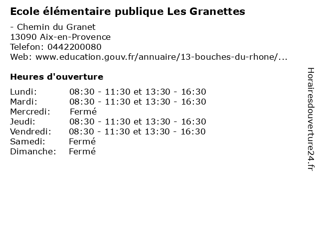 | Mardi | 08:30-11:30 et 13:30-16:30 |
