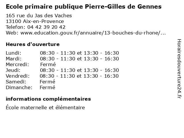 Lundi | 08:30-11:30 et 13:30-16:30 |