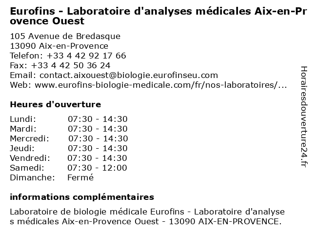 Termes de recherche pour Eurofins - Laboratoire d'analyses médicales Aix-en-Provence Ouest:aix, en, provence, d'analyses, laboratoire, médicales, ouest, eurofins |
