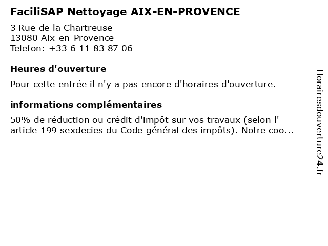 | Appeler FaciliSAP Nettoyage AIX-EN-PROVENCE | |