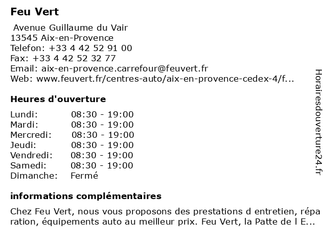 1 Feu Vert (Distance: 3,54 km) 210 Avenue de Bredasque, 13090 Aix-en-Provence amortisseurs, ampoule, autoradio, batterie, chaussettes neige, chaînes neige, coffre de toit, feu, freinage, glacière, pneu, pneu 4 saisons, pneu hiver, remorque, révision, vert, vidange 2 Feu Vert (Distance: 10,32 km) Avenue du Plan de Campagne, 13751 Les Pennes-Mirabeau amortisseurs, ampoule, autoradio, batterie, chaussettes neige, chaînes neige, coffre de toit, feu, freinage, glacière, pneu, pneu 4 saisons, pneu hiver, remorque, révision, vert, vidange 3 Feu Vert (Distance: 13,74 km) Quartier du Griffon, 13127 Vitrolles amortisseurs, ampoule, autoradio, batterie, chaussettes neige, chaînes neige, coffre de toit, feu, freinage, glacière, pneu, pneu 4 saisons, pneu hiver, remorque, révision, vert, vidange 4 Feu Vert (Distance: 15,95 km) 15 Avenue de Saint Antoine, 13015 Marseille 'equipement, auto, feu, sécurisé. stocks, vert 5 Feu Vert (Distance: 16,31 km) - ZAC de Saint-André, 13016 Marseille automobile, centre auto, dépannage, entretien, feu, garage, pneus, réparation, vert 6 Feu Vert (Distance: 16,52 km) 11 Avenue de saint antoine, 13016 Marseille amortisseurs, ampoule, autoradio, batterie, chaussettes neige, chaînes neige, coffre de toit, feu, freinage, glacière, pneu, pneu 4 saisons, pneu hiver, remorque, révision, vert, vidange |