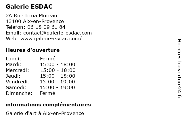 1 Esdac (Distance: 0,09 km) 5 boulevard de la République, 13100 Aix-en-Provence arts appliqués, centre, communication, design, ecole, ens, enseignement, esdac, formation, métiers, nationale, supérieur 2 Galerie Saltiel Aix (Distance: 0,52 km) 10 Rue Laurent Fauchier, 13100 Aix-en-Provence aix, arts, déco, décoratifs, galerie, musée, saltiel 3 Autran Galerie (Distance: 0,62 km) 2 Rue Littéra, 13100 Aix-en-Provence art, artists, autran, galerie, gallery 4 Galerie Le Container (Distance: 0,62 km) 4 Rue Granet, 13100 Aix-en-Provence arts, container, déco, décoratifs, galerie, le, musée 5 Galerie Jeanne Bossert (Distance: 0,64 km) 3 Rue Adanson, 13100 Aix-en-Provence bossert, exposition, galerie, galerie d'art, jeanne, musée, peinture 6 Galerie Ars Longa (Distance: 0,67 km) 2 Rue Jaubert, 13100 Aix-en-Provence ars, arts, déco, décoratifs, galerie, longa, musée |