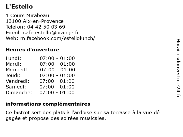 Mercredi | 07:00-01:00 |