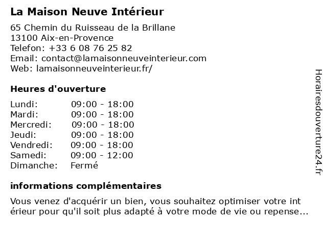 1 Aux Rêves d'Intérieur (Distance: 7,43 km) 31 Boulevard Aristide Briand, 13100 Aix-en-Provence aux, d'intérieur, rêves 2 CINK - Décoration d'intérieur (Distance: 7,73 km) 2 Rue Paul Bert, 13100 Aix-en-Provence accessoires et décoration, cink, d'intérieur, décoration, les dépôts-ventes, les métiers d’art 3 Alexandra Ferré - Architecte d'intérieur (Distance: 8,91 km) 2090 Route Milles, 13510 Éguilles alexandra, architecte, architecture, d'intérieur, design, décoration, ferré, ferré alexandra 4 Auberge La Bastide Neuve (Distance: 11,72 km) 959 Chemin des Curates, 84530 Villelaure auberge, bastide, la, neuve 5 Olivia Gentile - Architecte d'intérieur (Distance: 13,28 km) 1 Allée de Tanalia, 13590 Meyreuil architecte, conception, d'intérieur, décoration, gentile, intérieur, meyreuil, olivia, rénovation 6 Villas Trident (Distance: 28,57 km) 745 boulevard Ventadouiro, 13300 Salon-de-Provence agences, constructeur, construction, maison, neuve, trident, villas |