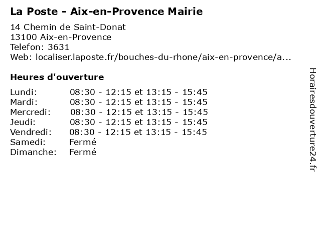 Termes de recherche pour La Poste - Aix-en-Provence Mairie:poste, aix, en, provence, la, expédition internationale, mairie, agence postale, courrier postal |