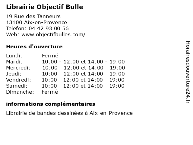 | Mercredi | 10:00-12:00 et 14:00-19:00 |