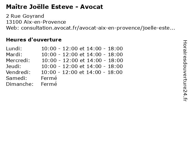 | Lundi | 10:00-12:00 et 14:00-18:00 |