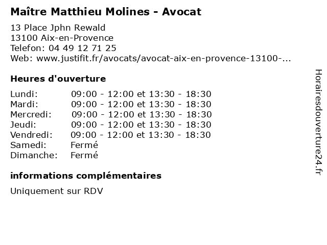 | Lundi | 09:00-12:00 et 13:30-18:30 |