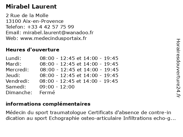 Mercredi | 08:00-12:45 et 14:00-19:45 |