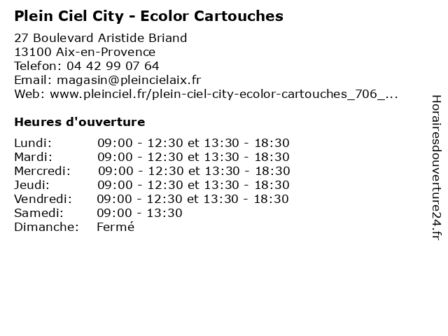 | Mercredi | 09:00-12:30 et 13:30-18:30 |