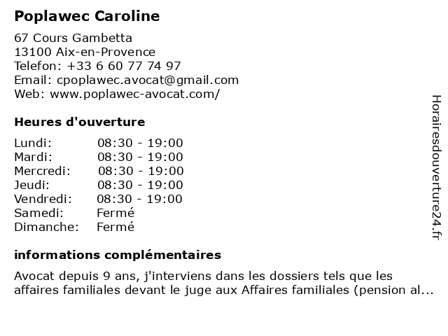 | Lundi | 08:30-19:00 |