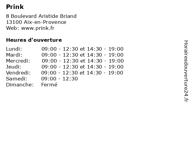 | Vendredi | 09:00-12:30 et 14:30-19:00 |